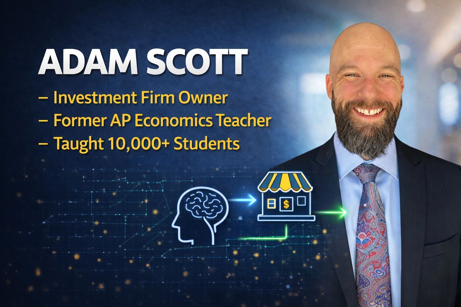 I’m Adam Scott — a teacher, entrepreneur, and lifelong learner. For over 15 years I taught AP Economics, Government, and History in some of America’s top schools. Since then, I’ve built education programs that have reached more than 5,000 students worldwide. Along the way, I’ve seen the gaps in traditional education — and I’ve made it my